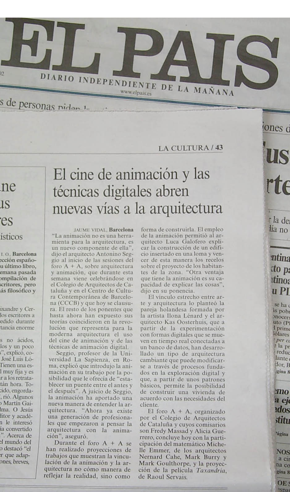 Jaume Vidal, "El cine de animacion y las tecnicas digitales abren nuevas vias a la arquitecture" El Pais, 21 giugno 2002 p. 43 edz. nazionale.