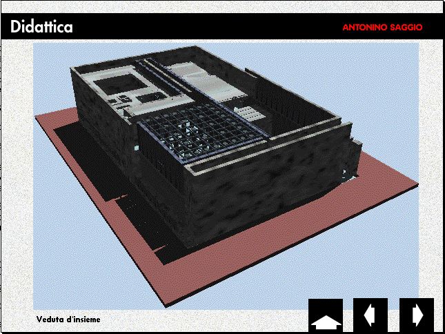 4. Infine, per la fase più lunga della costruzione del modello si possono utilizzare i personal computer (meno costosi e di più facile utilizzo) ma, dopo una traduzione dell'archivio in un formato di scambio come il DXF si può accedere a computer più potenti e veloci come quelli della Silicon Graphics in particolare per avere un percorso in tempo reale (che può essere registrato su cassetta) dentro l'edificio ricostruito.