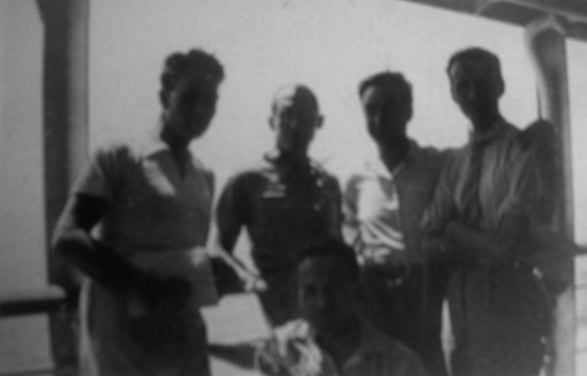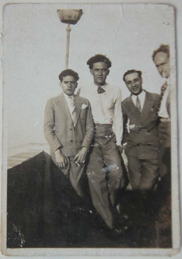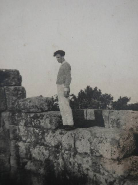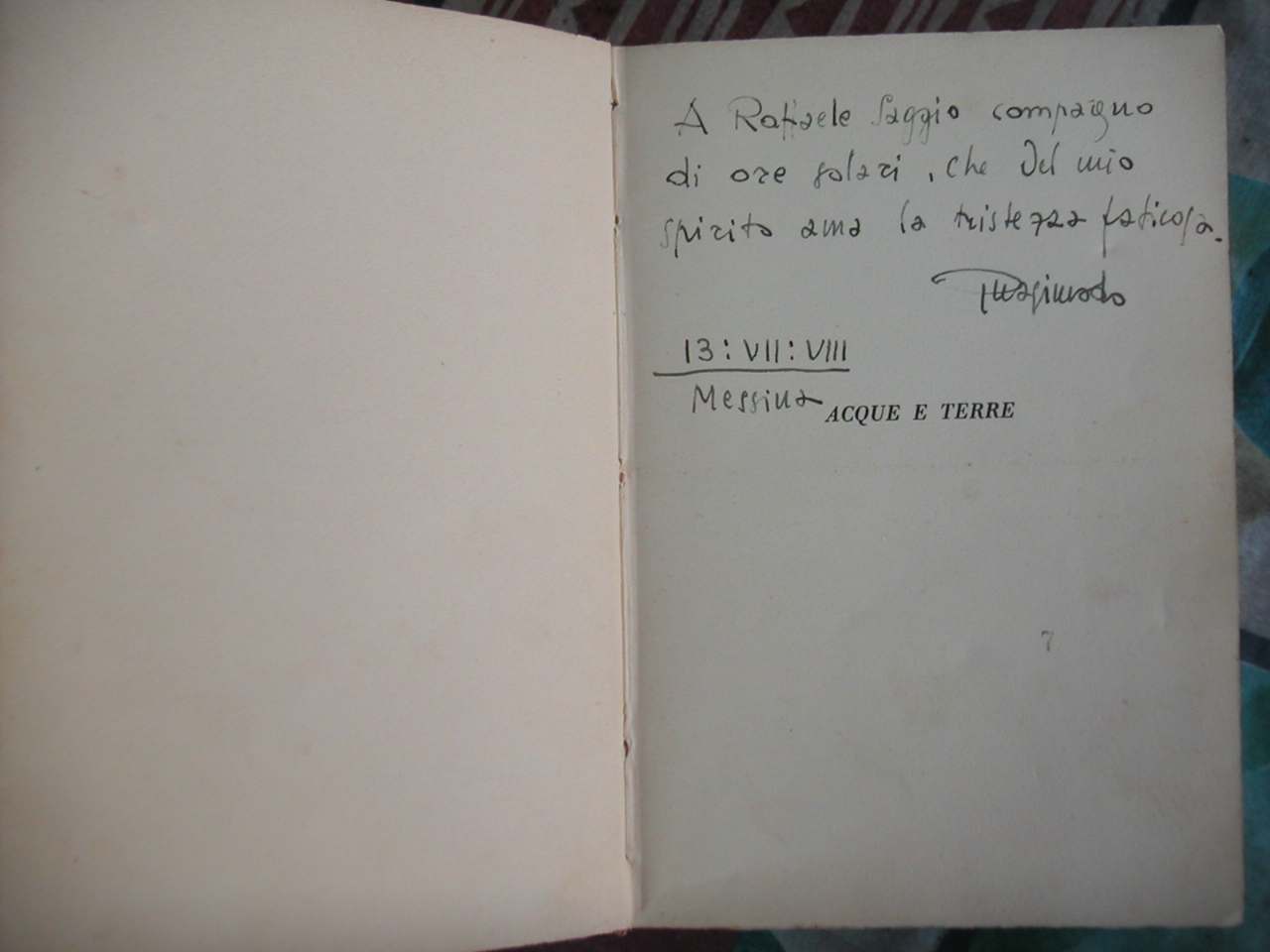 Raffaele Saggio Mura megalitiche Tindari (me) 1929 ca. Below dedication of Acque e Terre. Picture below Raffaele Saggio (second from left) Salavatore Quasimodo (last rleft) at Tindari 1929 ca