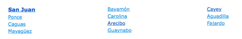 In the Puertorico island 12 major cities were found accordinglt with this web site Again the two goups have analysed the cities to creat four diffent constelations http://welcome.topuertorico.org/city/index.shtml