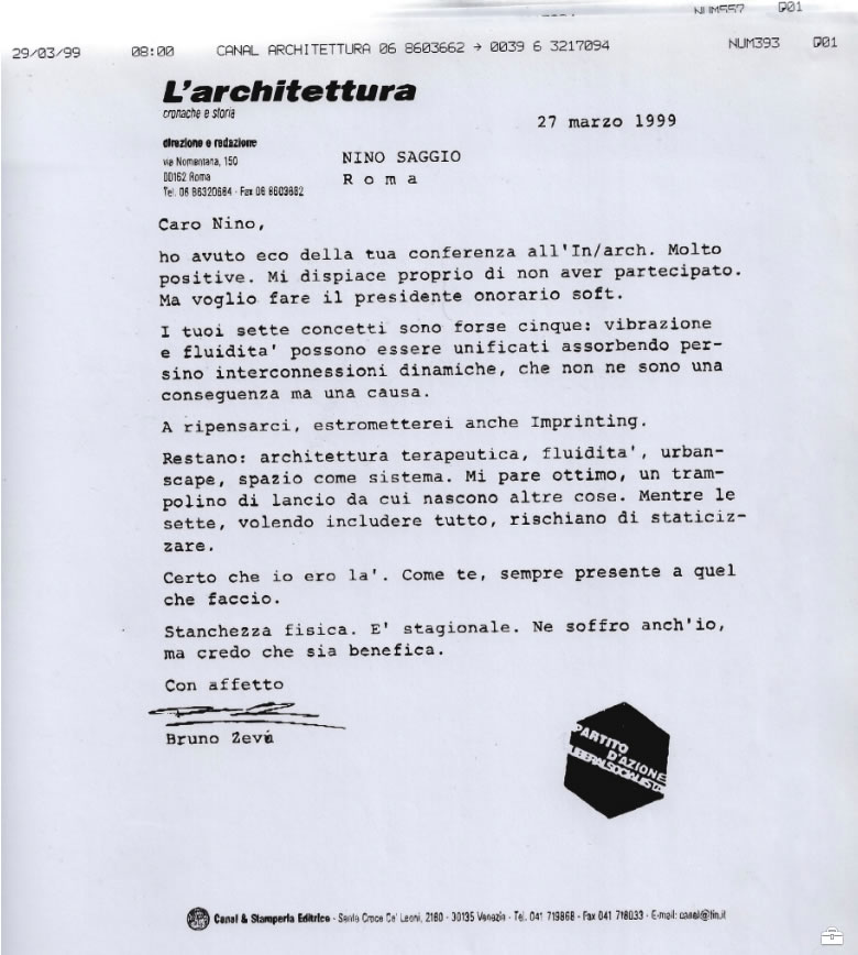 "Verso la fine del 1977, il professor Zevi arrivò in aula annunciando una sua nuova creazione: l’Universale di architettura! L’idea si basava su una serie di idee interconnesse che trovavano in quell’atto di fondazione un coagulo. I principi fondamentali erano quattro: