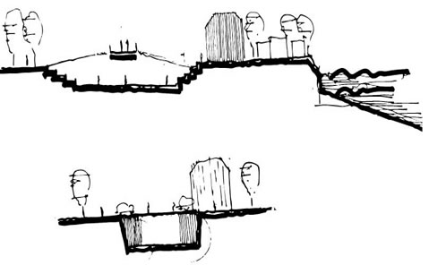 Stazione al Parco della Caffarella e Centro per la conservazione delle Biodiversità Vegetali Tesi di Laurea di Michela Damiani. Lungo il bordo del Parco della Appia Antica, lungo la storica Via Latina, il progetto ricava una stazione della UGL™ che in questo tratto ha un binario sotterraneo. Lo scavo consente di dare sistemazione ai resti archeologici e di accedere ad un nodo informativo per la visita al Parco. Il progetto è completato con leggere strutture parzialmente ipogee che creano una sistemazione paesaggistica e funzionale per la fruizione della grande risorsa archeologica e naturale del bellissimo Parco da parte dei cittadini.