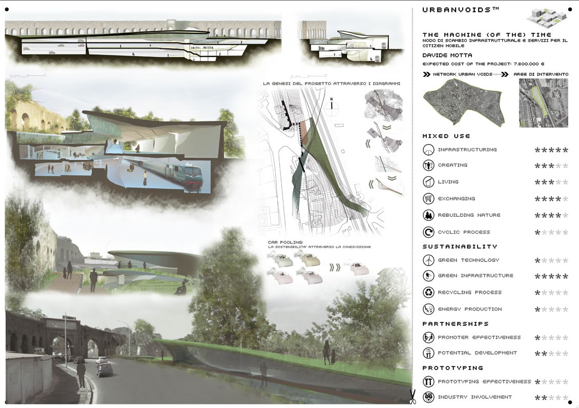 UrbanGreenLine. Via Latina Roma Michela Damiani AA 09-10 discussa Ottobre 2010 Relatore A. Saggio Lungo il bordo del Parco della Appia Antica, lungo la storica Via Latina, il progetto ricava una stazione della UGL™ che in questo tratto ha un binario sotterraneo. Lo scavo consente di dare sistemazione ai resti archeologici e di accedere ad un nodo informativo per la visita al Parco. Il progetto è completato con leggere strutture parzialmente ipogee che creano una sistemazione paesaggistica e funzionale per la fruizione della grande risorsa archeologica e naturale del bellissimo Parco da parte dei cittadini.