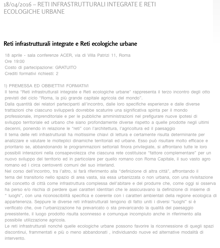"Nuova generazione Infrastrutture" l'Architetto Aprile 2014
