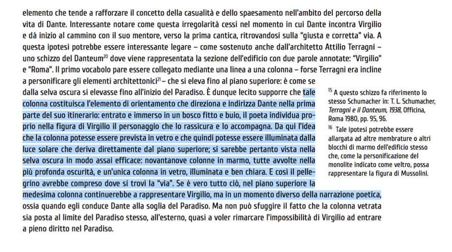 In realtà il più critico sul Danteum è forse Gabriele Milelli nella sua scheda nellOpera Completa a cura di Giorgio Ciucci.