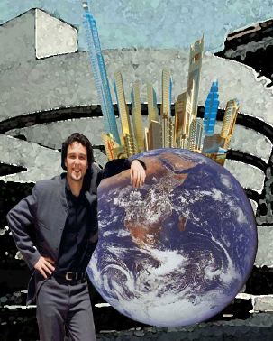 Nel ritratto ho voluto inserire una serie di immagini dei progetti di Steven Holl perchè è l'architetto sul quale faccio riferimento per le mie idee progettuali. Penso che la lavorazione di volumi puri, alternando pieni e vuoti, luci e ombre, e giocando sui tagli, rappresenti un architettura forte, che colpisce, suggestiona. Per questo ho inserito come sfondo il portico del "serpentone" del quartiere Corviale di Roma. La sua linearità con quei setti ravvicinati che si succedono per centinaia di metri mi hanno particolarmente affascinato. I colori rappresentano il cielo, l'edificio, i percorsi e la natura, sovrapponendosi l'uno su l'altro. Infine ho inserito la foto con mio nipote cercando di comunicare il fatto che le scelte progettuali che intraprendo sono appena nate e con l'esperienza e la pratica cresceranno e si affineranno, come un bimbo da crescere.