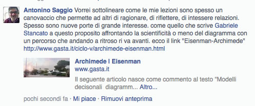 - Una lettera sulla lezione Modelli Decisonali Diagrammatici Scientifici per un'architettura in forma di modello.