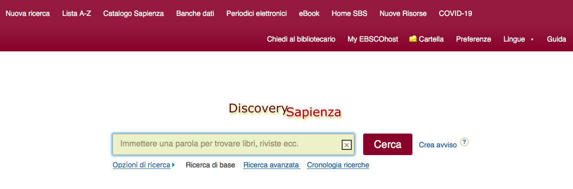 A Sapienza: Sistema Bibliotecario / LINK UTILI a destra / Bankedati / Avery / Urban Disc e Riba