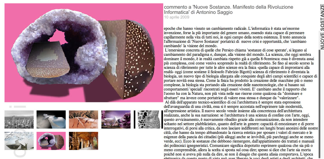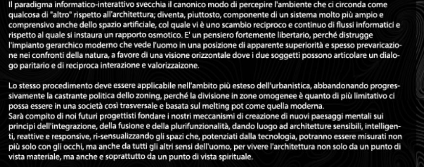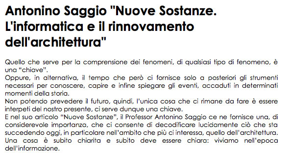 " nuovo sentire." --------Nuove sostanze, Manifesto per un'architettura dell'informazione, A.Saggio