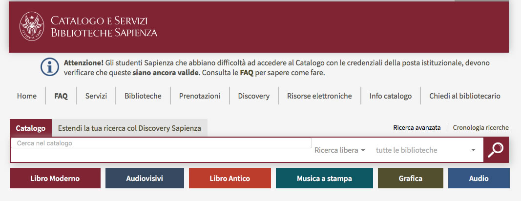 A Sapienza: Sistema Bibliotecario / LINK UTILI a destra / Bankedati / Avery / Urban Disc e Riba