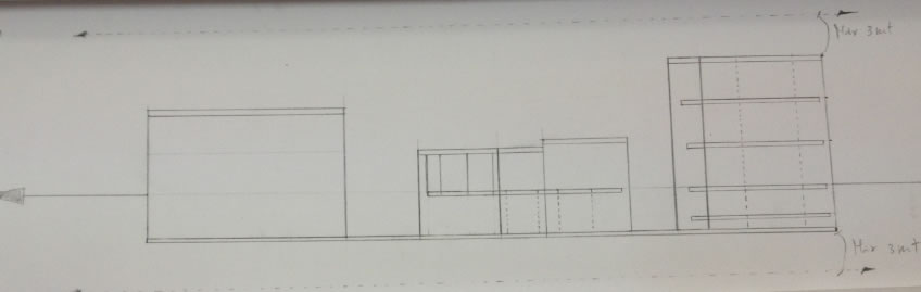 F3. Iniziare a fare a vostra scelta una serie di disegni inziando dalla caratteristica che secondo voi è più importante del progetto. per esempio Silhouette? o Chiaroscuro? o. Attacco al suolo? o Attacco al cielo o Ritmo? Per "vedere" il progetto è utile ovviamente a volte guardare il modello 3d se lo avete nel computer o ancora meglio il plastico se lo avete cominciato a fare. Adesso in qualche modo "interrogato2 il plastico più che dal punto di vista spaziale..da quello espressivo!