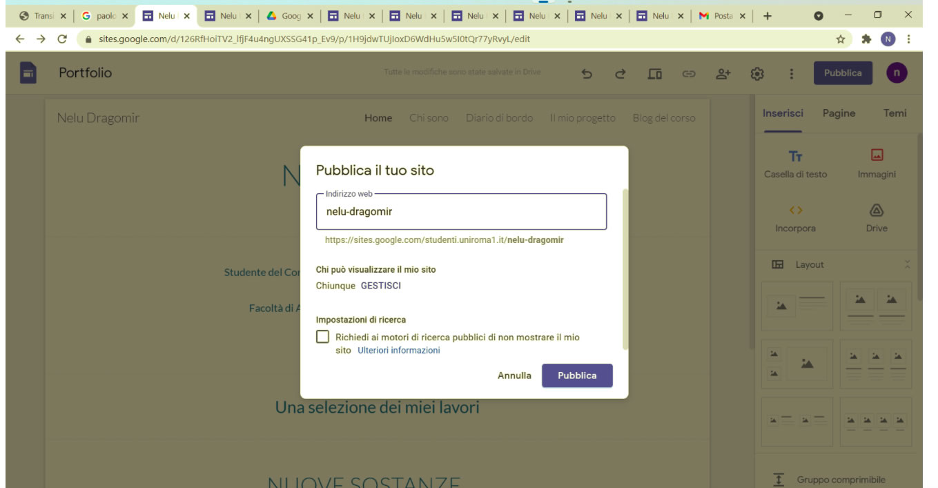 8. Cliccare su pubblica inpoche parole si tratta di rendere pbblico l'accesso al sito in maniera che non esistano vincoli-