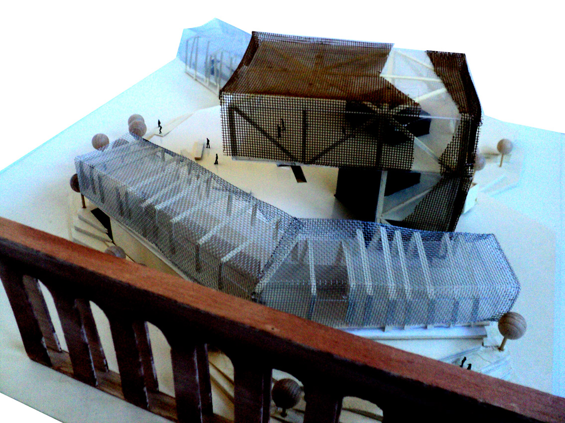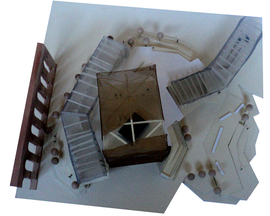 Il progetto si organizza formalmente come se fosse una traccia nel suolo, una sorta di memoria di qualcosa di già avvenuto. Come se il ballerino virtuale, avesse operato una trivellazione e provocato smottamenti del terreno. Questa deflagrazione crea spazi apparentemente distribuiti in maniera casuale, ma che in realtà costituiscono il micro sistema di connessioni del progetto al suo complesso intorno archeologico e storico.