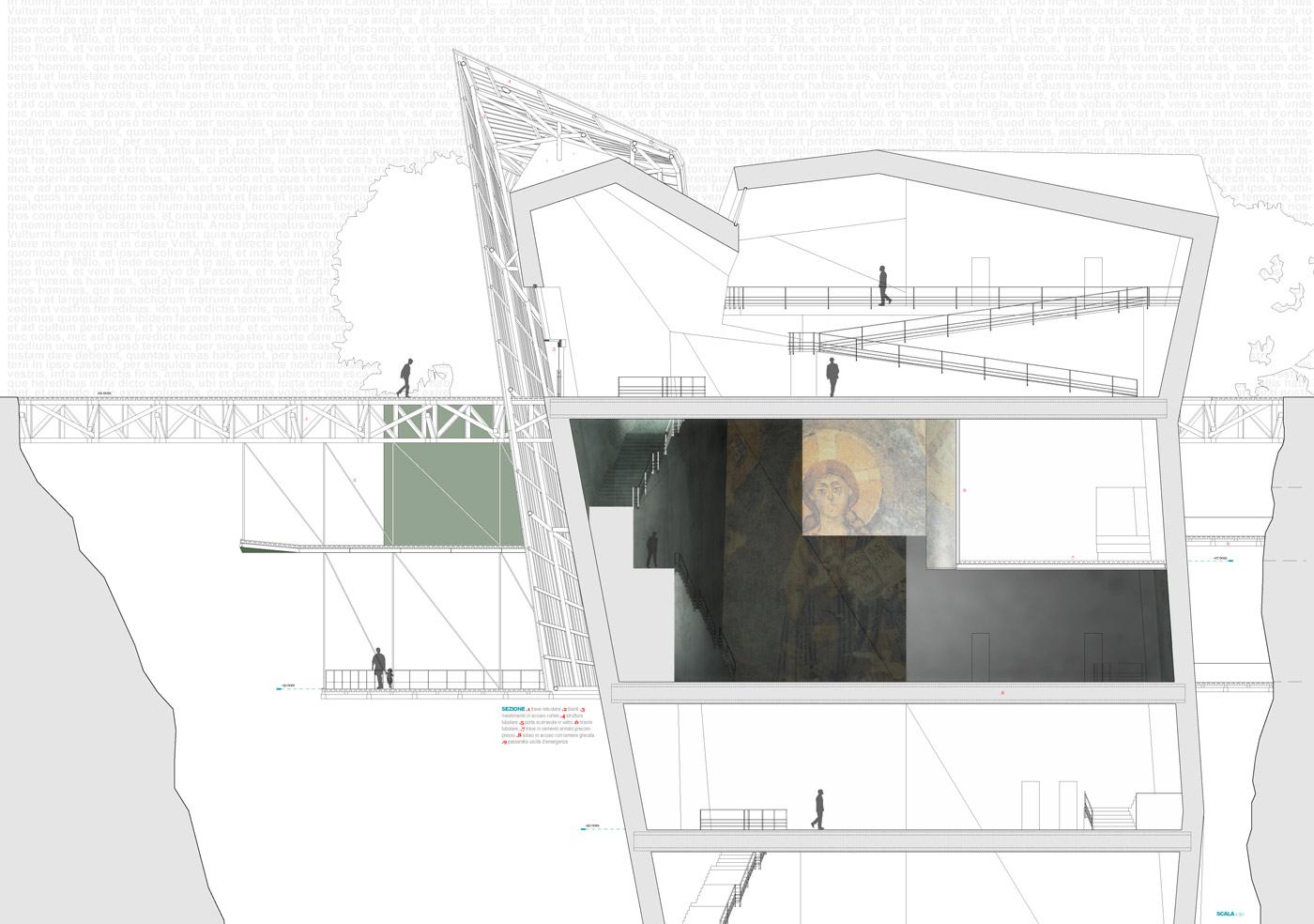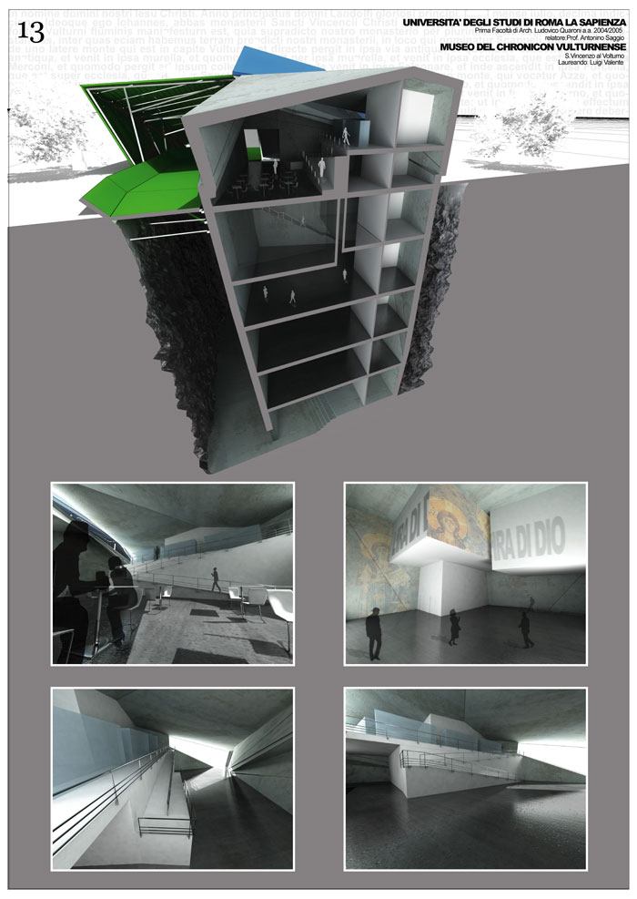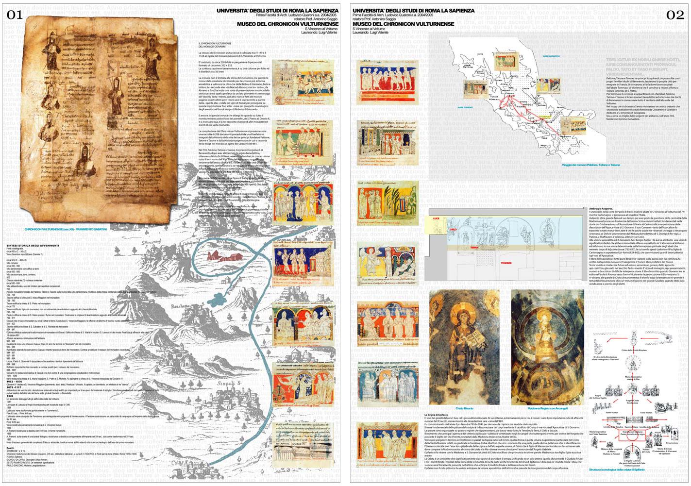 Il progetto propone una struttura museale atta a presentare e a conservare i dati riguardanti un antico e affascinante codice miniato mediovevale - Il Chronicon Vulturnense. Si tratta di un manoscritto redatto tra il 1119 e il 1124 che racconta le cronache del monastero vulturense di S. Vincenzo insieme a narrazioni dell'antico testamento, del mondo pagano e romano per proseguire nella narrazione di eventi sino alle vicine vicende di Roberto il Guiscardo.