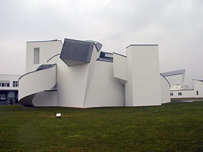 Oppure come nel museo del desine della Vitra International a Weil-am-Rhein, ( 1987-89 ), dove i solidi geometrici seppure incastrati , ruotati e distorti, restano ancora riconoscibili.