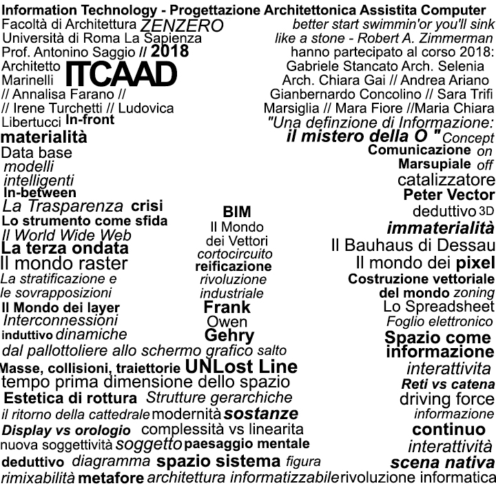 NB Gli studenti hanno acconsentito ad essere in questo elenco per funzioni relative al corso offerto dalla Facoltà di Architettura «Sapienza» Università di Roma Professore Antonino Saggio. Qualunque altro uso dei loro nominativi e indirizzi è da considerarsi arbitrario e illegale.