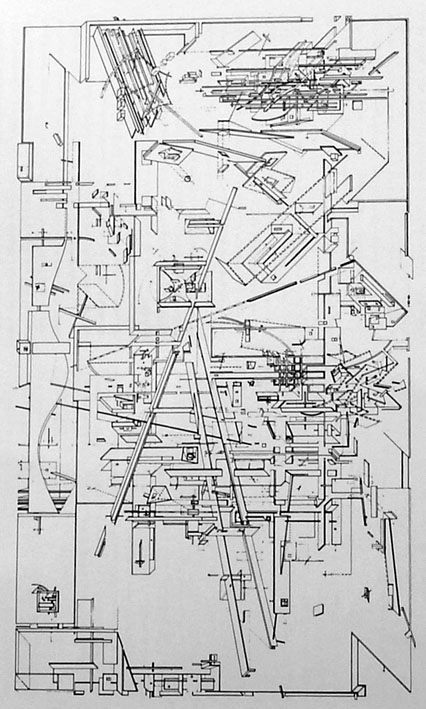 Il lavoro di Tschumi a sua volta dve molto all'approccio Notazionale... Una tecnica che asrae un livello un layer dalla realtà per creare un sistema di relazioni - un campo - astratto. ipico ed esemplare a questo proposito è il lavoro di Walter de Maria Lighting filed (molto in rete)