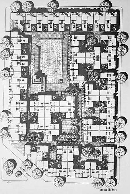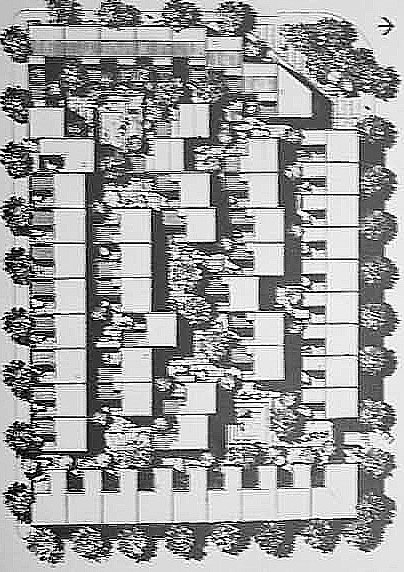 No more Architecture is "a pure game of volumes under the Light" but it starts to become aninterlocking interweaving system of open and built space.