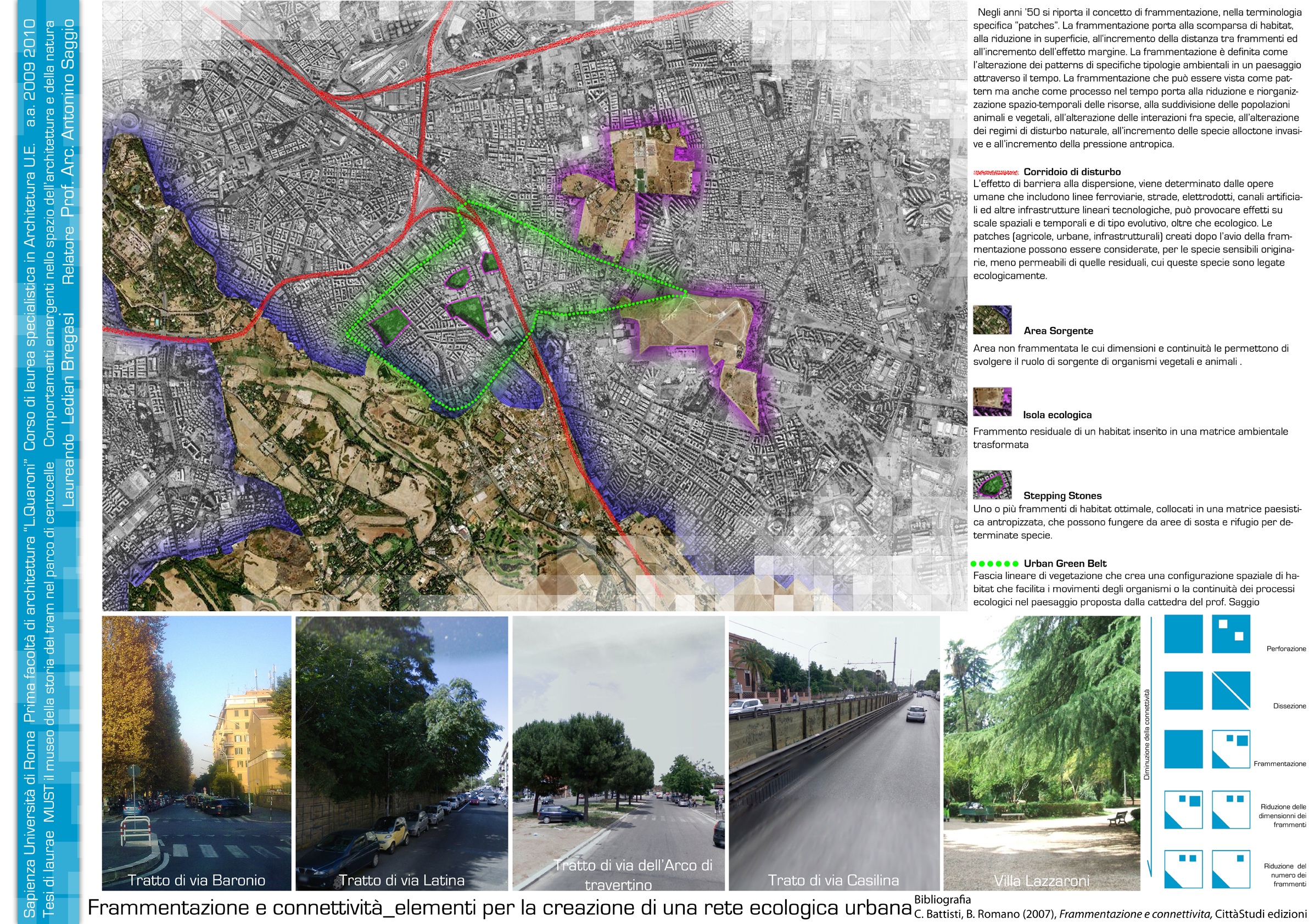Studiando la situazione dell’habitat residuale nella zona sud-ovest di Roma, si nota che il parco della Caffarella può essere interpretato come un’area sorgente di specie animali e vegetali. Si distinguono inoltre due frammenti più piccoli che essendo circondati da una matrice antropizzata possono essere definiti come isole ecologiche. Il percorso della UGL™ da questo puntodi vista può essere inteso anche come un "corridoio ecologico" che connette l’area sorgente alle isole.