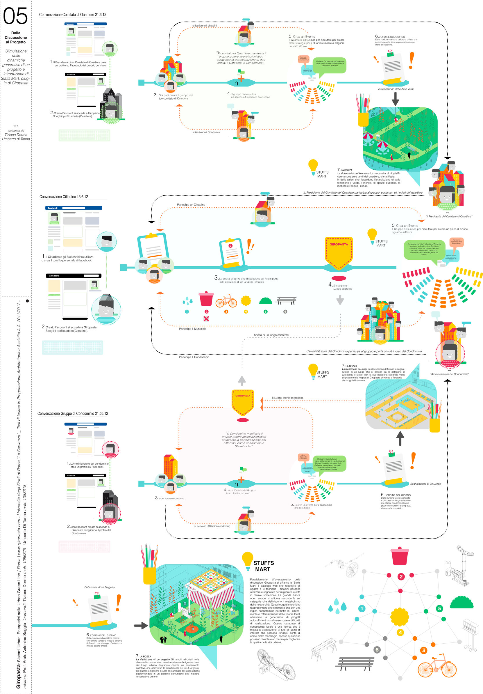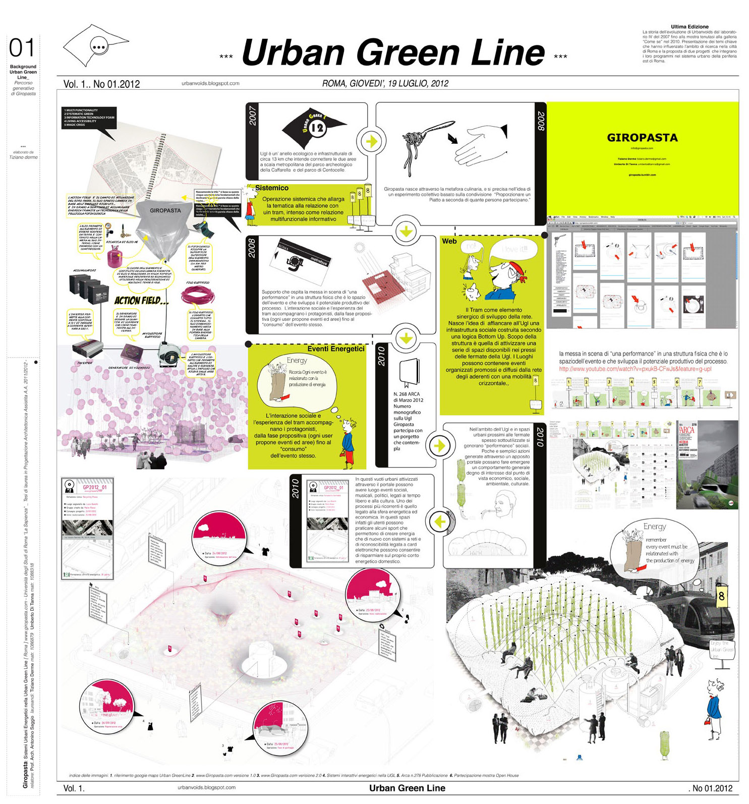La diffusione delle reti d’informazione ha portato all’affermazione sempre più capillare di una varietà di attori, soprattutto giovani, che si confrontano con la tecnologia creando sia dei “luoghi” virtuali che fisici, luoghi che entrano in un circuito di reti globali. Giropasta è un’infrastruttura sociale che si affianca all’Ugl e che si costruisce secondo una logica bottom up. Scopo della struttura è attivare una serie di spazi disponibili nei pressi delle fermate della Ugl. Giropasta si compone sia di uno spazio virtuale, il portale, da cui gli utenti possono organizzare e promuovere eventi di vario tipo (sociali, musicali, politici, tempo libero, cultura...) sia di spazi fisici reali nelle aree più vicine alle fermate del tram in cui questi eventi si realizzano, spesso legati ad attività ludiche che, attraverso il sistema della rete e della riconoscibilità, tramite card elettroniche, consentono di creare energia e di risparmiare sul proprio conto energetico domestico.Il portale giropasta si affianca alla Ugl innescando processi economici e sociali che hanno dei punti di contatto con altri tre progetti analoghi, “urbanvoids.blogspot.com” in Italia, “www.casastristes.org” in Spagna e “www.spa-replace.com” in Olanda, dai quali emerge con chiarezza quella che è la vera “crisi” delle nostre città, i consumi incontrollati e spregiudicati di ogni forma di energia e di risorsa. La struttura di Giropasta si articola concretamente secondo un processo di discussing, conversing, voting, ed infine di design tool, dove l’interazione sociale e l’esperienza del tram accompagnano i protagonisti e ogni user può proporre eventi ed aree fino al “consumo” dell’evento stesso. Le strutture-design tool, costituite da elementi gonfiabili che spesso si associano agli eventi, rappresentano dei contenitori perfetti per queste interazioni temporanee, perché adattabili al numero di utenti, alla durata dell’evento ed al target di persone a cui sono destinate. L’attività dell’utente, solitamente ludica, rappresenta la forza che permette al sistema di funzionare.Il “Parlamento Gonfiabile”, che è una delle configurazioni possibili che vengono materializzate lungo il corso dell’Ugl, è la reificazione di un processo collettivo che è nato all’interno del social network di Giropasta, (www.giropasta.com), nel quale i cittadini stessi hanno segnalato un luogo, creato un gruppo di discussione sul progetto, organizzato eventi di progettazione partecipata ed interrogato esperti. Il processo on line è finalizzato dunque alla redazione di un documento di progetto che, definito in tutti i suoi dettagli e nelle sue potenzialità energetiche, verrà consegnato all’amministrazione competente.