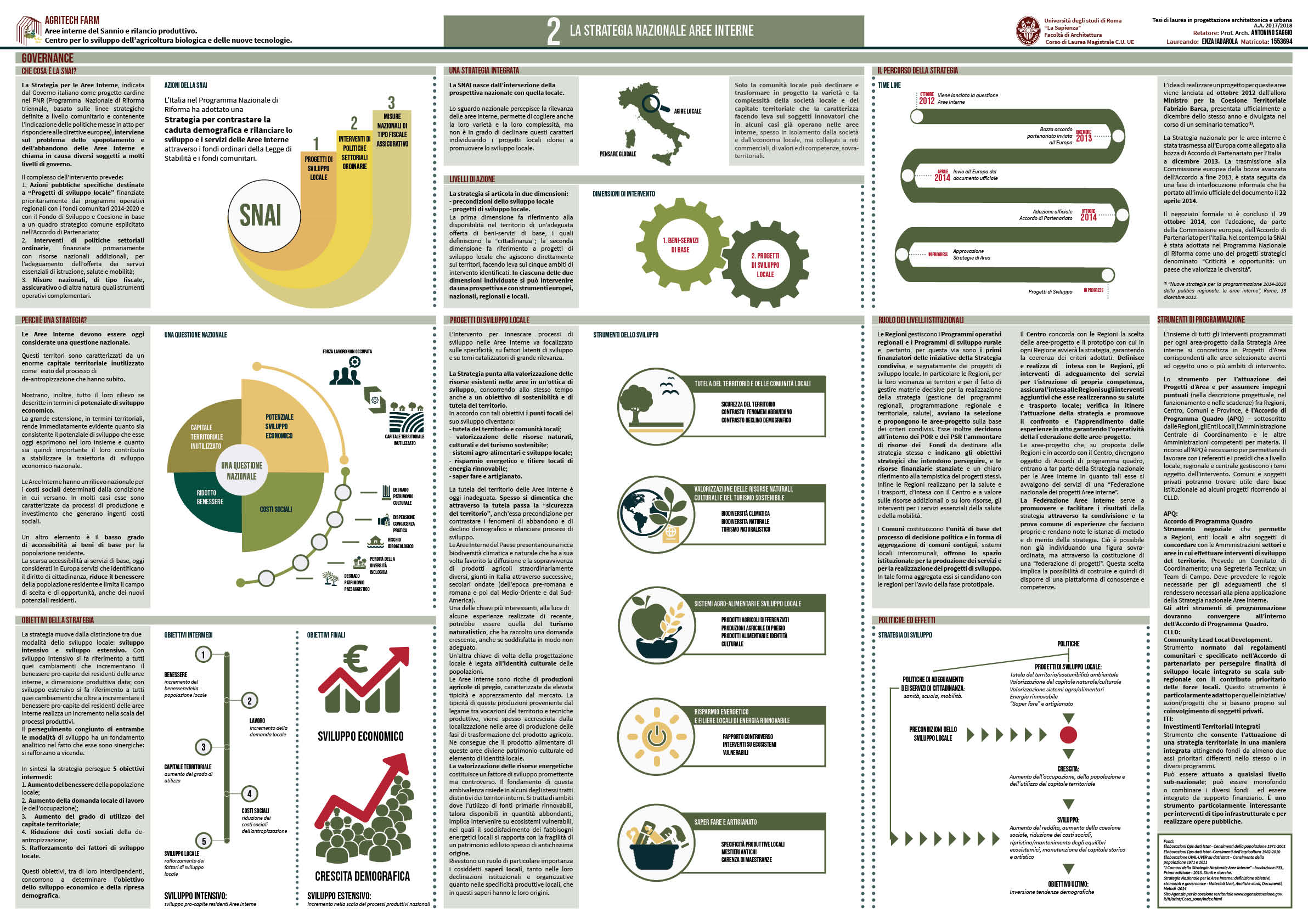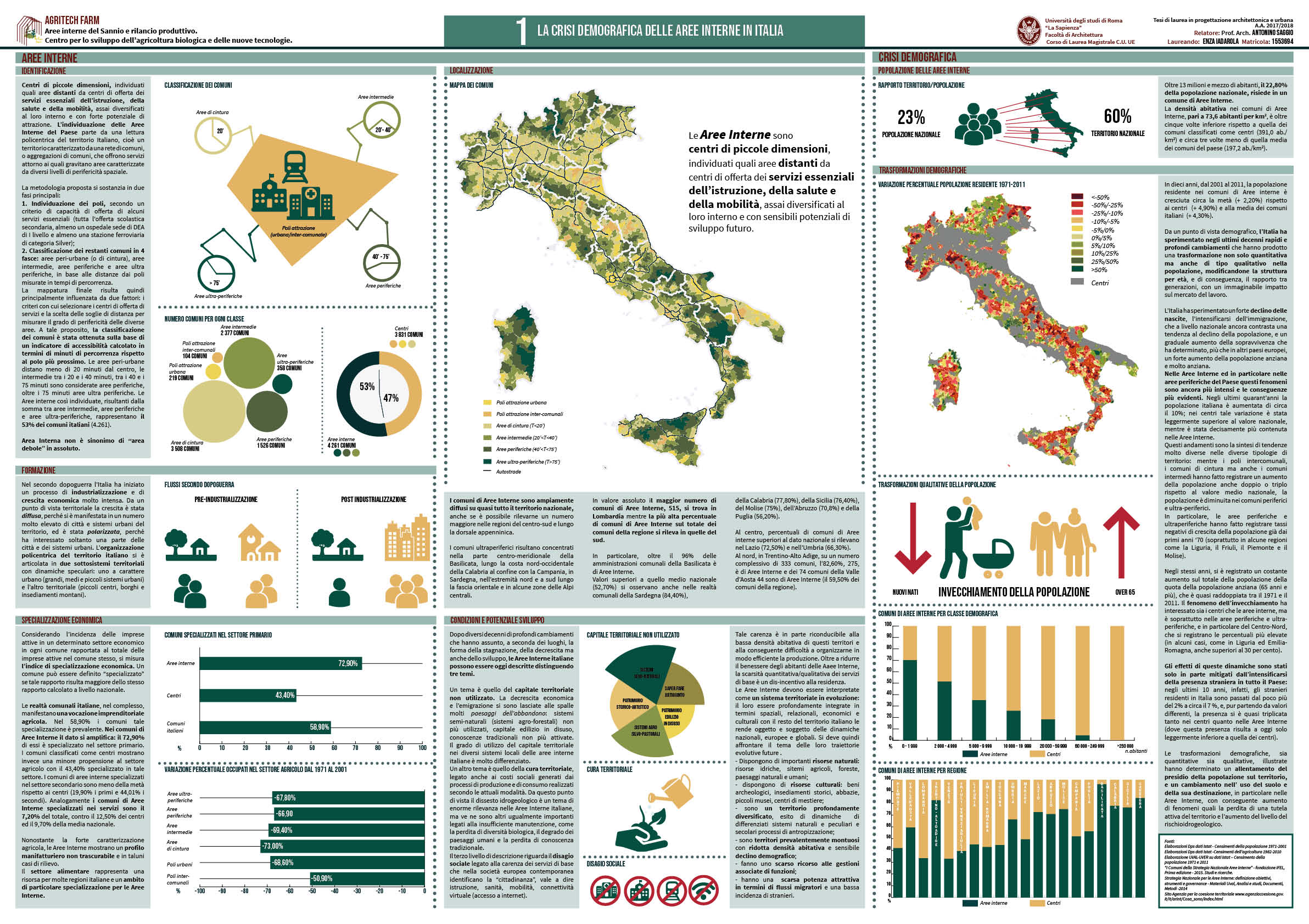 Una delle più macroscopiche crisi dell'italia è quella che è legata alle cosiddette "aree interne". La definizione si deve al lavoro dell'economista Fabrizio Barca che nel suo periodo come ministro della Coesione nazionale a cominciare dal 2013 la mise in primo piano elaborando una articolata serie di strategie ed obiettivi sotto il nome di Snai, Il fenomeno è assolutamente rilevante e corrisponde alla presenza per oltre il 50% di centri di piccole dimensioni spesso localizzati in altura che soffrono di gravi fenomeni di spopolamento e di conseguente abbandono delle attività economiche, primariamente quelle agricole. Naturalmente legate a queste tematiche vi è un ampia fascia di situazioni collaterali che riguardano la perdita di efficienza del sistema infrastrutturale o il progressiva indebolimento del territorio dal punto di vista geomorfologico o l'abbandono del patrimonio edilizio sia pubblico che privato.