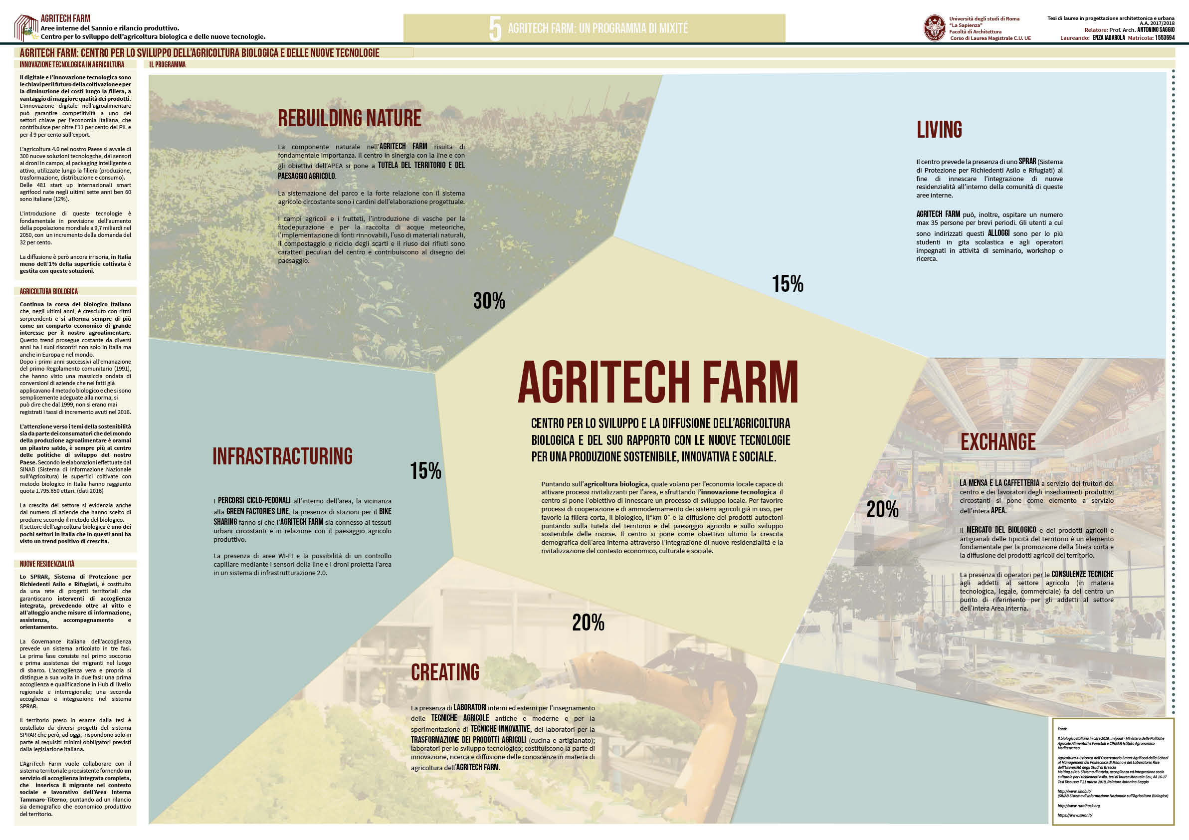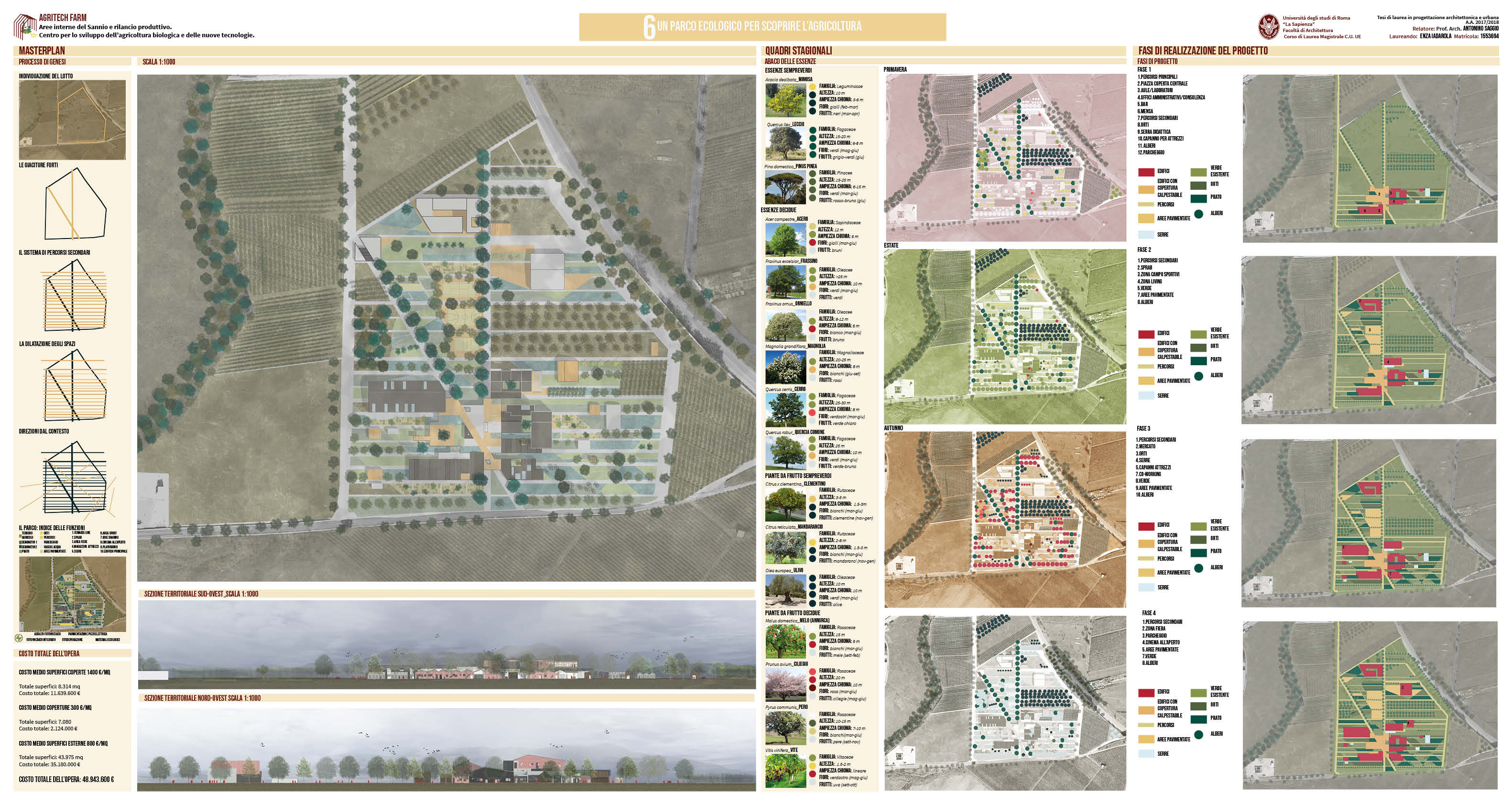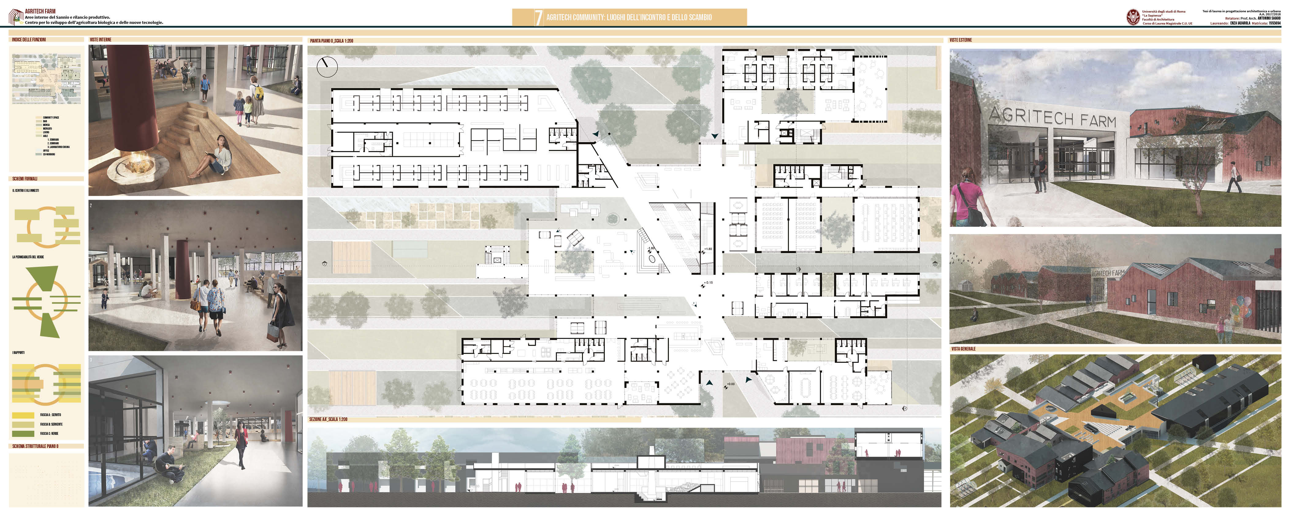 Questi fenomeni sono tipici anche delle aree del Sannio prese in esame che presentano queste caratteristiche oltre ad un deciso invecchiamento delle popolazioni. In queste aree sono presenti anche zone industriali, finanziate da precedenti programmi di intervento nel Meridione di'Italia, che sono spesso inuutilizzate e abbandonate.Il progetto si focalizza nell'area Tammaro-Titerno e include 30 comuni della provincia di Benevento. L’area si estende sull’Appennino campano, tra la Valle Telesina, le colline dell’alto Tammaro ed il massiccio del Matese ed è parte, appunto, della macro regione storico-geogrfica del Sannio. Il progetto si focalizza in particolare sull'area di San Salvatore-Telesino che presenta questi fenomeni insieme alla presenza di strutture produttive abbandonate. Mutuando la strategia da altri progetti di cattedra, il progetto di Enza iadarola si propone innanzitutto un'azione infrastrutturale convinti che il recupero di queste aree debba passare con operazioni in tal senso. Si propone pertanto una "Green Factories Line" che è un anello infrastrutturale di nuova generazione concepito per l’ottimizzazione e il miglioramento della mobilità all’interno dell’area produttiva ecologicamente attrezzata e quale infrastruttura di altre operazioni di avanzamento tecnologico e paesaggistico. La line connette tra loro aree produttive intercomunali e costituisce un anello distributivo tra le stesse (per merci e persone) e le connette alle realtà urbane limitrofe. All'interno della Line si individuano diverse aree potenziali oggetto di intervento, tra cui quella che ospiterà il progetto Agritech Farm in articolare è un Centro per lo sviluppo e la diffusione dell’agricoltura biologica e del suo rapporto con le nuove tecnologie per una produzione sostenibile, innovativa e sociale. All'interno di un disegno di suolo agricolo e produttivo in Agritech Farm si inseriscono pertanto una serie di edifici tra loro integrati, ma anche edificabili in fasi successive. Il progetto si articola attorno a funzioni produttive legate all'incontro, all'educazione e allo scambio caratterizzate da un mercato aperto e scoperto ed è risolto con una architettura ad andamento ortogonale che si inserisce nel disegno di suolo circostante e che trova in alcuni momenti di connessione e di svuotamente delle masse gli episodi spaziali più caratteristici.