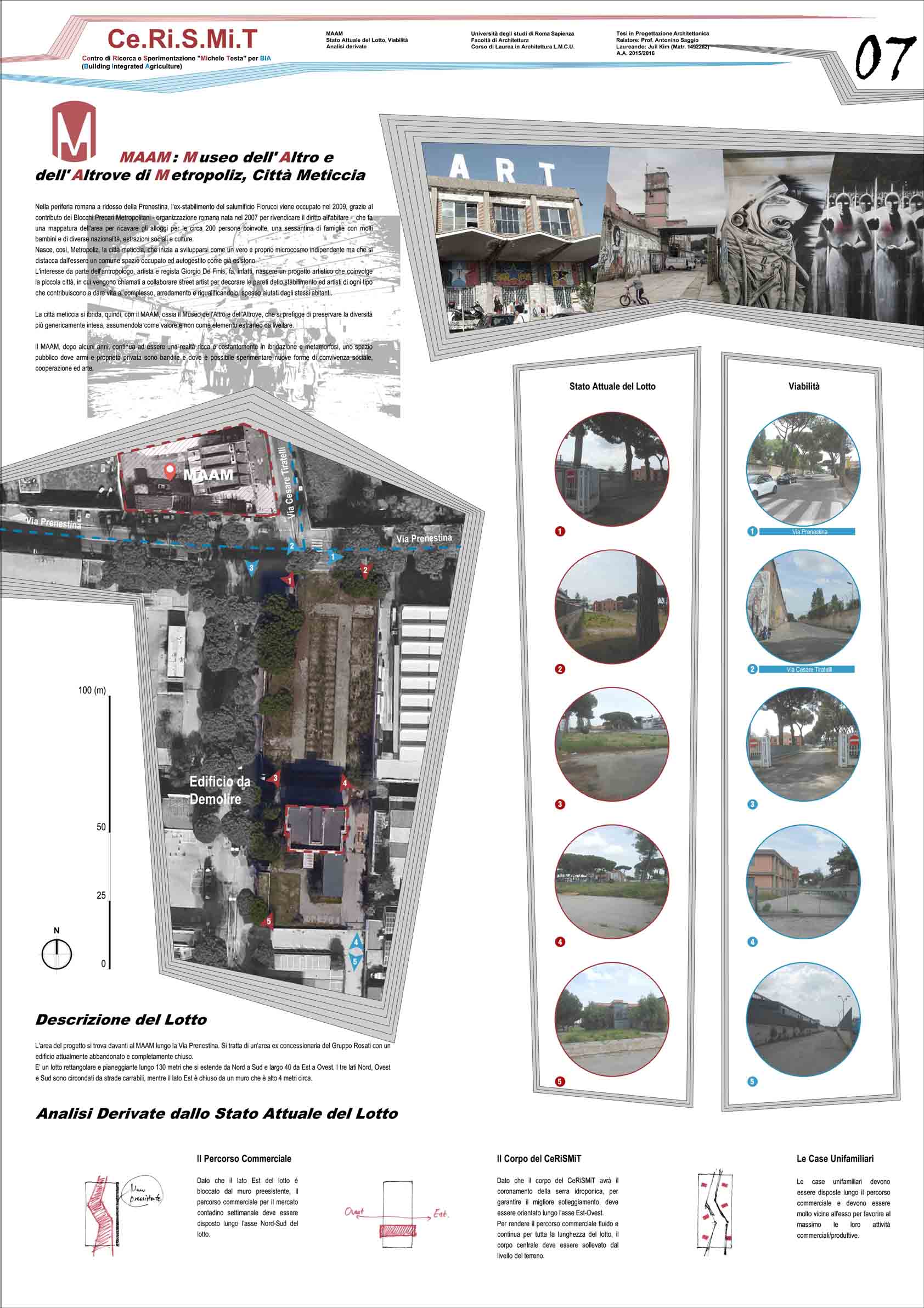 Si tratta di una vecchia fabbrica di salumi Fiorucci occupata da 200 persone in cerca di alloggio e lavoro. Ad alcune di queste persone vengono offerti dei lavori e delle abitazioni per incentivare l’integrazione di questa cittadella isolata all’interno del quartiere proprio nel CeRiSMiT. Lo stesso isolamento del museo occupato dalle persone senza tetto hanno condotto all’ideazione nel CeRiSMiT attraverso tre funzioni collaboranti: un mercato contadino con frequenza settimanale che ospita la vendita degli ortaggi prodotti nello stesso centro e nelle aree vicine, un centro di ricerca sull’agricoltura caratterizzato dalla possibilità di attuarvi agricoltura biologica, delle case e degli orti acclusi per permettere l'integrazione e l'uso continuo del centro. L’originaria vocazione agricola pensata da Michele Testa per il quartiere Tor Sapienza viene così rilanciata all’interno della situazione sociale attuale ma anche nel contesto di nuove forme di agricoltura..