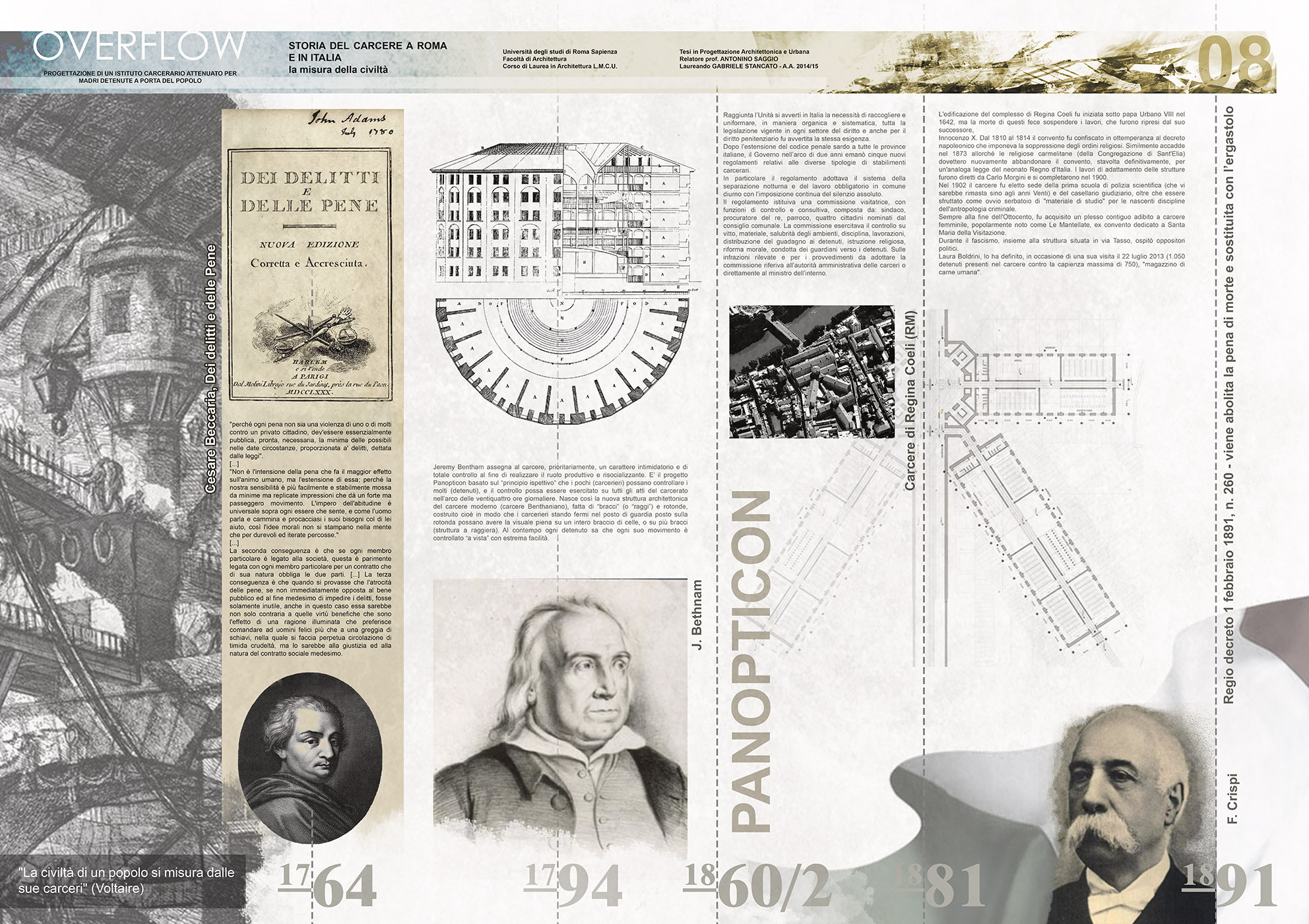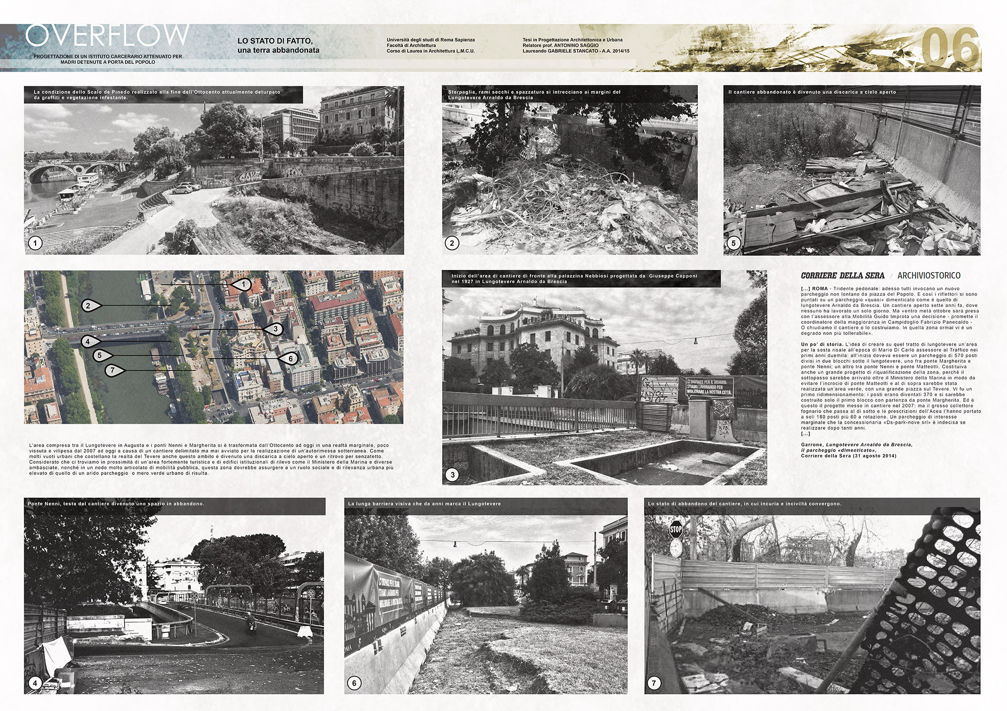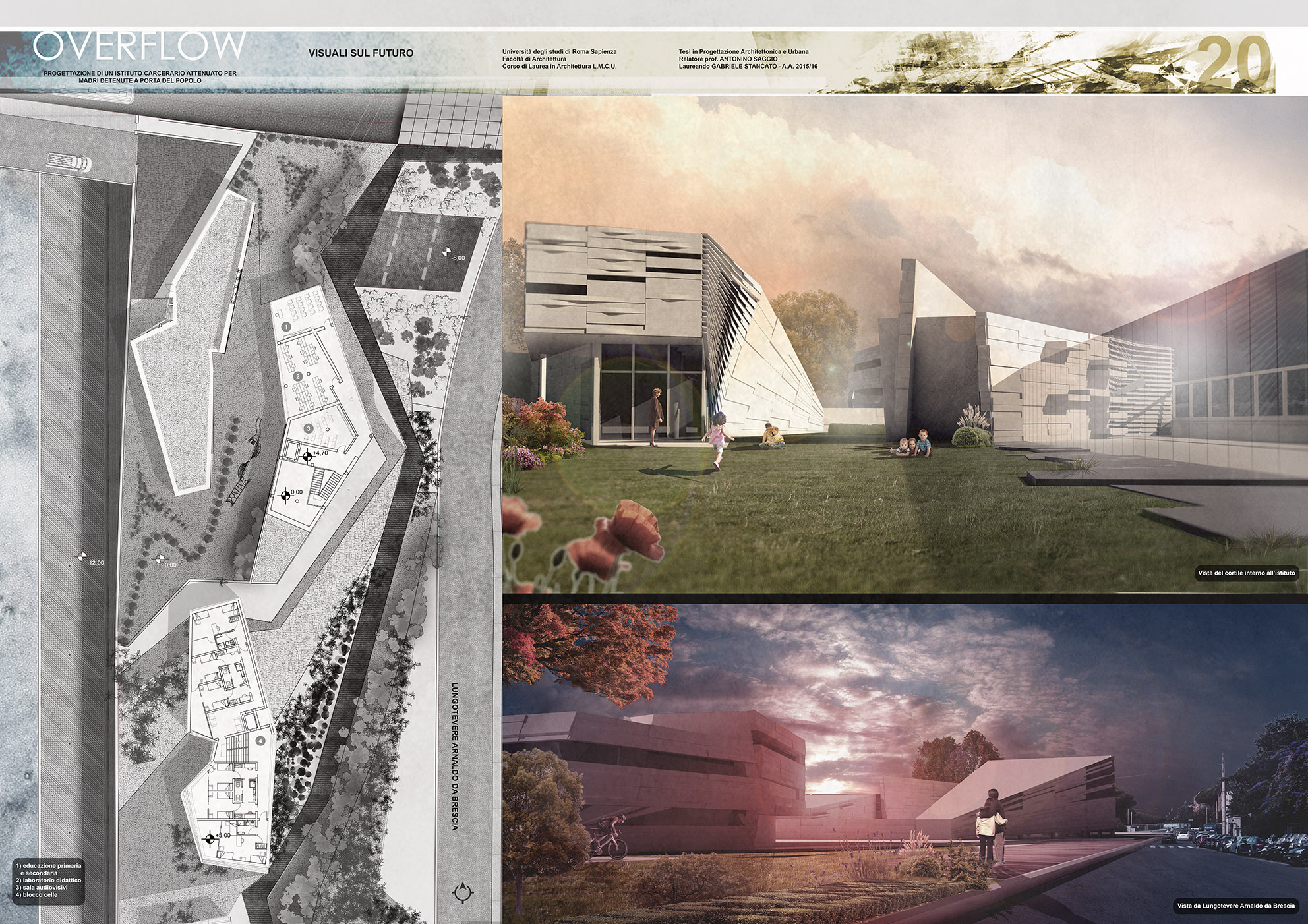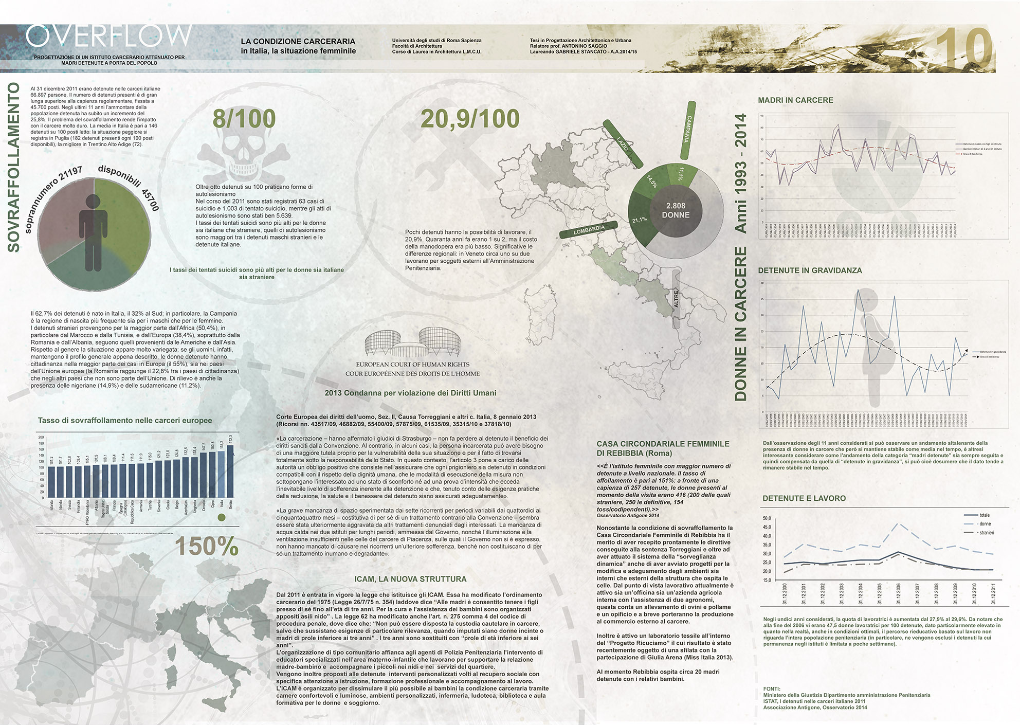 Il progetto Overflow nasce dalla considerazione dello stretto rapporto che nella storia di Roma hanno avuto fin dal principio Tevere-Città-Carcere e dal voler fronteggiare la gravissima condizione in cui vertono le strutture carcerarie. Si ricorda che la corte di Strasburgo ha condannato l’Italia per violazione dei diritti umani con una sentenza del 2013.