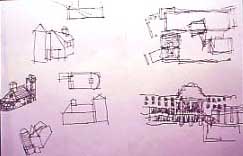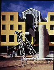 Chiamato a redigere il piano di sviluppo del piccolo campus, Gehry disarticola il programma in edifici distinti. È una convincente strategia pratica, ma soprattutto il motore della soluzione architettonica. Non conta tanto la singolarità dell'edificio quanto lo spazio pubblico che esso crea e la socialità che promuove La strada interna viene deformata in piazzette oblique con una logica di creazione "sommatoria", analitica. Nel disegno degli edifici si attua una tecnica di "transfigurazione" che, partendo da icone note (il tempio, la galleria, la chiesa), le pone in crisi nei materiali, nei colori, nei contrasti volumetrici.