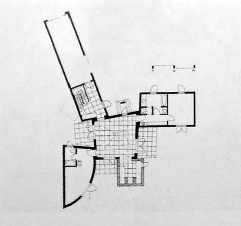 Pezzi isolati e riconoscibili (la torretta della camera, il padiglione-ospiti con appeso lo schermo, la serra del soggiorno) danno forma, come in un villaggio, agli spazi all'aperto.