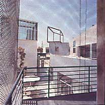 All'incunearsi del percorso verso l'interno, Gehry associa una scoppiettante eruzione di eventi. I materiali (intonaco, pannelli galvanizzati in metallo o in rame), i volumi (lucernari o terrazze e scale racchiuse dalle reti) e forme libere che incorniciano il cielo fungono da richiami e creano una avvolgente creazione tridimensionale modellata dal movimento dei fruitori.