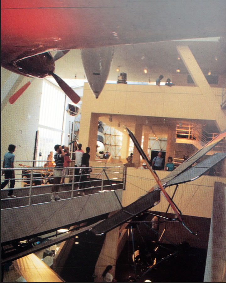 Due intuizioni alla base del progetto: da una parte dividere lo stretto edificio (che si addossa al fabbricato esistente che ospita il resto dell'esposizione) in tre parti. All'interno la distribuzione crea passerelle che si protendono nei due grandi invasi a tripla all'altezza, all'esterno un edificio in stadi, come un missile sdraiato suddiviso nelle sue diverse camere di combustibile. Seconda intuizione è il ruolo della scultura quale segnale, simbolo, evento. Memore del cavaliere di Scarpa, Gehry incastra un aereo all'esterno del museo.