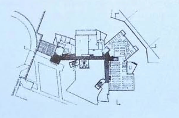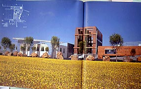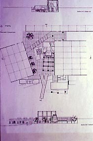 I corpi si dipartono da un asimmetrico slargo centrale, popolato da edifici e strutture scultoree, per allungarsi e adagiarsi sul paesaggio. La mensa è di S. Tigerman, le sistemazioni esterne affidate a P. Walker e M. Schwartz echeggiano, soprattutto nei grandi massi lungo il perimetro, i motivi della Land Art.