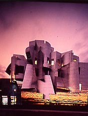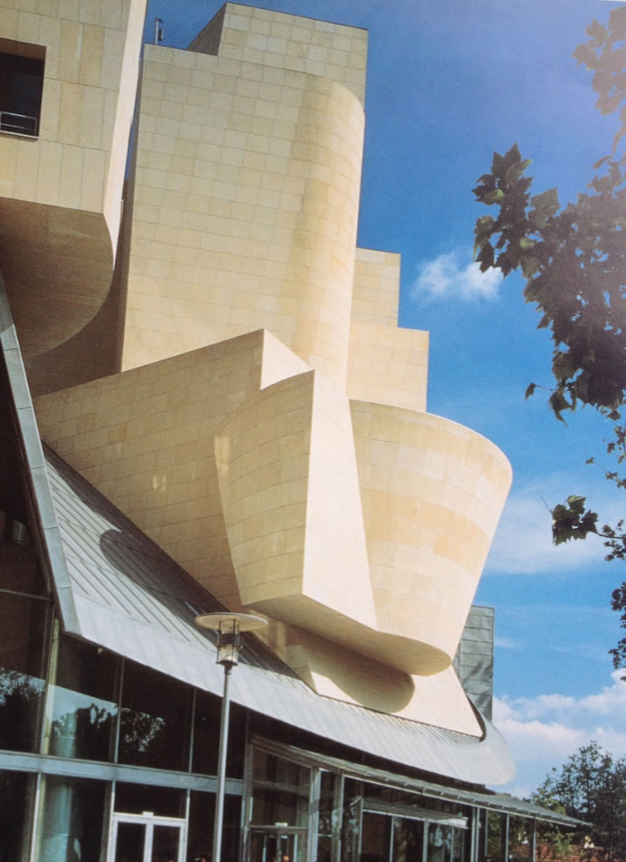 "Capolavoro dell'architettura moderna" merita una trattazione a sé, anche per capire gli aspetti dell'ideazione e della costruzione e le vicende dell'abbandono del committente. In ogni caso, sull'angolo verso il parco, si è di fronte a una delle sue più incandescenti creazioni. Volumi ora circolari, ora prismatici, ora rettilinei, ora inclinati sbattono uno sull'altro. Prevale la pietra, ma l'innesto della pensilina in ferro e vetro lancia l'opera nell'atmosfera. Nell'atrio riscopriamo la capacità dell'antico Gehry di circondare con oggetti plastici lo spazio pubblico, questa volta, naturalmente, introiettato.