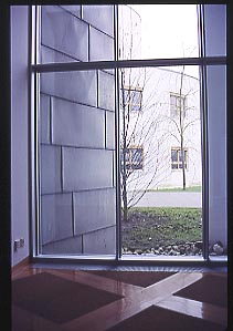 Il programma riguarda la produzione, lo studio e la diffusione di energie alternative e altrettanto stimolante è il sito con un fronte urbano e l'altro verso un cuneo di verde semi-agricolo. Il progetto presenta il ribaltamento di una precedente impostazione: nell'Edgemar i percorsi erano un liquido che scavava la massa, qui sono i fabbricati che si spandono fluidamente all'intorno. Gli uffici, le sale riunioni, la piccola centrale di energia, l'atrio creano una figura che può essere letta alternativamente come pieno o vuoto. È la presenza dell'architettura nel paesaggio la chiave o una sua interpretazione "idrogeologica" come vediamo nelle mappe delle aree di bacino dei fiumi?