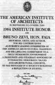 Ecco perché tra le cose che sono state scritte su Zevi, una delle più giuste è la menzione alla sua  elezione a Fellow dell'American Institute of Architects "Appassionato e tenace assertore dell'integrazione tra valori democratici e concezioni architettoniche, egli ha rilevato come gli edifici riflettano l'anima di una società".