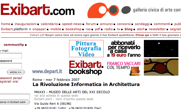 Rassegna stampa Segui alcuni link dove è stato dato l'annuncio Architecture.it Exibart Arch'it Professione Architetto InfoGuild Edilizia On Line Architettura di Pietra Edilportale MinisteroBAC Tafter Europaconcorsi ed altre ancora che ringraziamo per l'attenzione