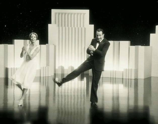 Jean Dujardin insieme al regista Michel Hazanavicius sul set del film The Artist