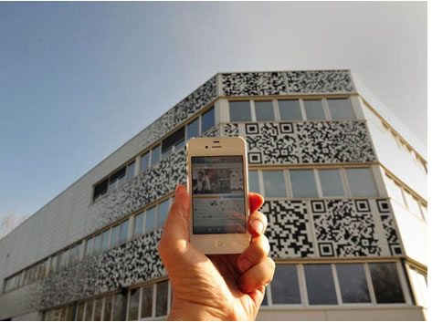 "Questo modo di fare architettura informando è stato preso alla lettera anche dal gruppo olandese MVRDV con il loro TeleTech call centre. In questo caso hanno sfruttato la tecnologia del QR codes, riproducendoli in facciata, qualsiasi persona in possesso di uno smartphone può scansionare ognuno dei qr codes ed accedere alle informazioni a cui essi rimandano. Essendo questa una tecnologia molto diffusa, " Generare il QR Code Per generare un code come quelllo di sotto andare per esempio a questo sito http://it.qr-code-generator.com