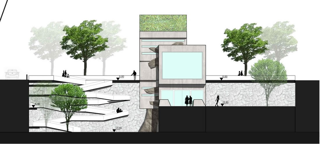 F5. FOTOMONTAGGIO del progetto nell'area di URBAN VOIDS realizzato con grande cura. Disegno chiave fondamentale dell'intera presentazione.