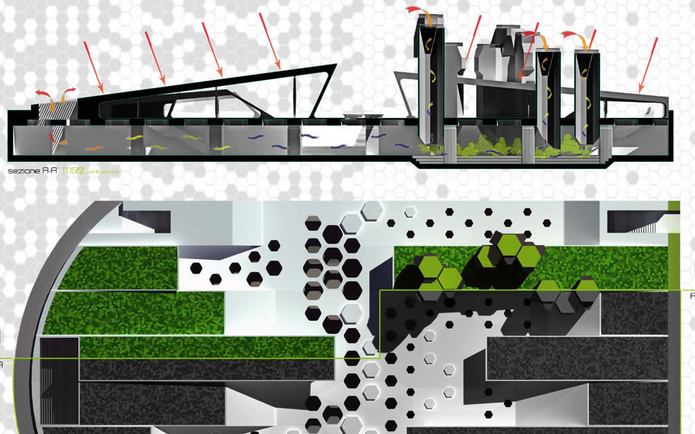 Riflettete e presentate il vostro concept dal punto di vista strutturale. Decidete come è costruto il vostro edificio. Per punti strutturali, con un sistema a telaio..(se in acciaio o in cemento armto o in legno) oppure con un sistema di mura portanti tendenzialmente continuo, oppure con sistemi particolari per esempio tenso struttura o membrana o elementi prefabbricati, oppure con mesh tridimensionali spaziali...