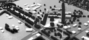 Um novo centro urbano com Centro de Serviços Administrativos, Centro Cultural e Recreativo, Lojas, Residências.