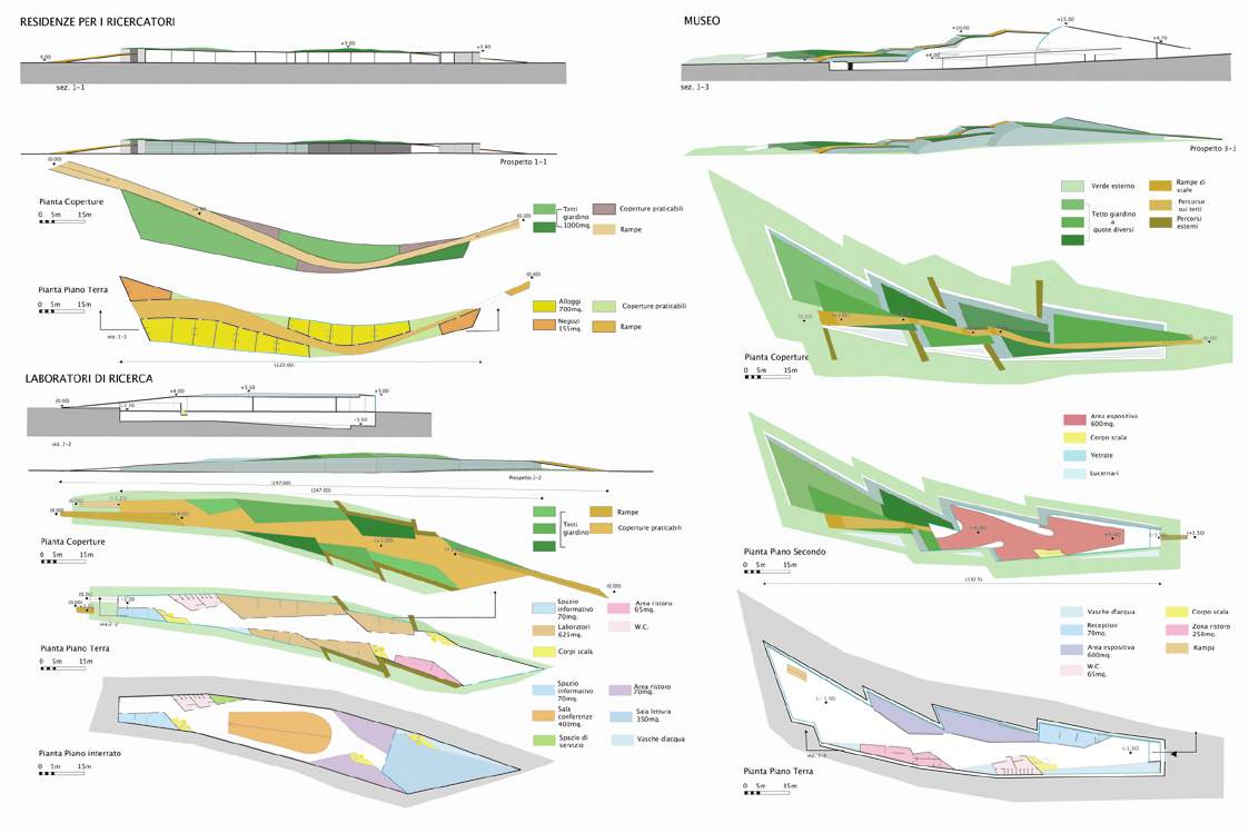 i laboratori di ricerca, le residenze per i ricercatori e un museo a scopo
