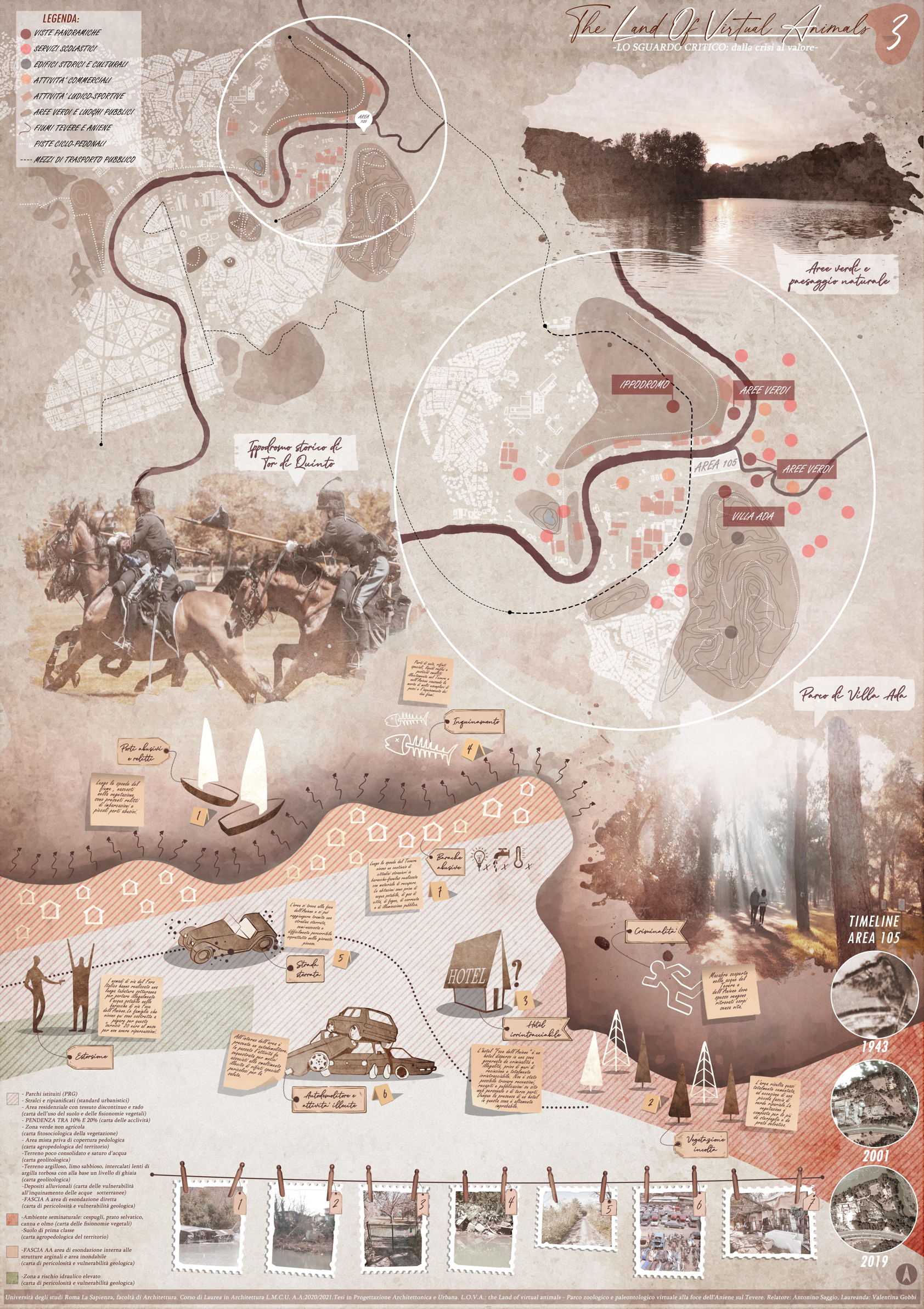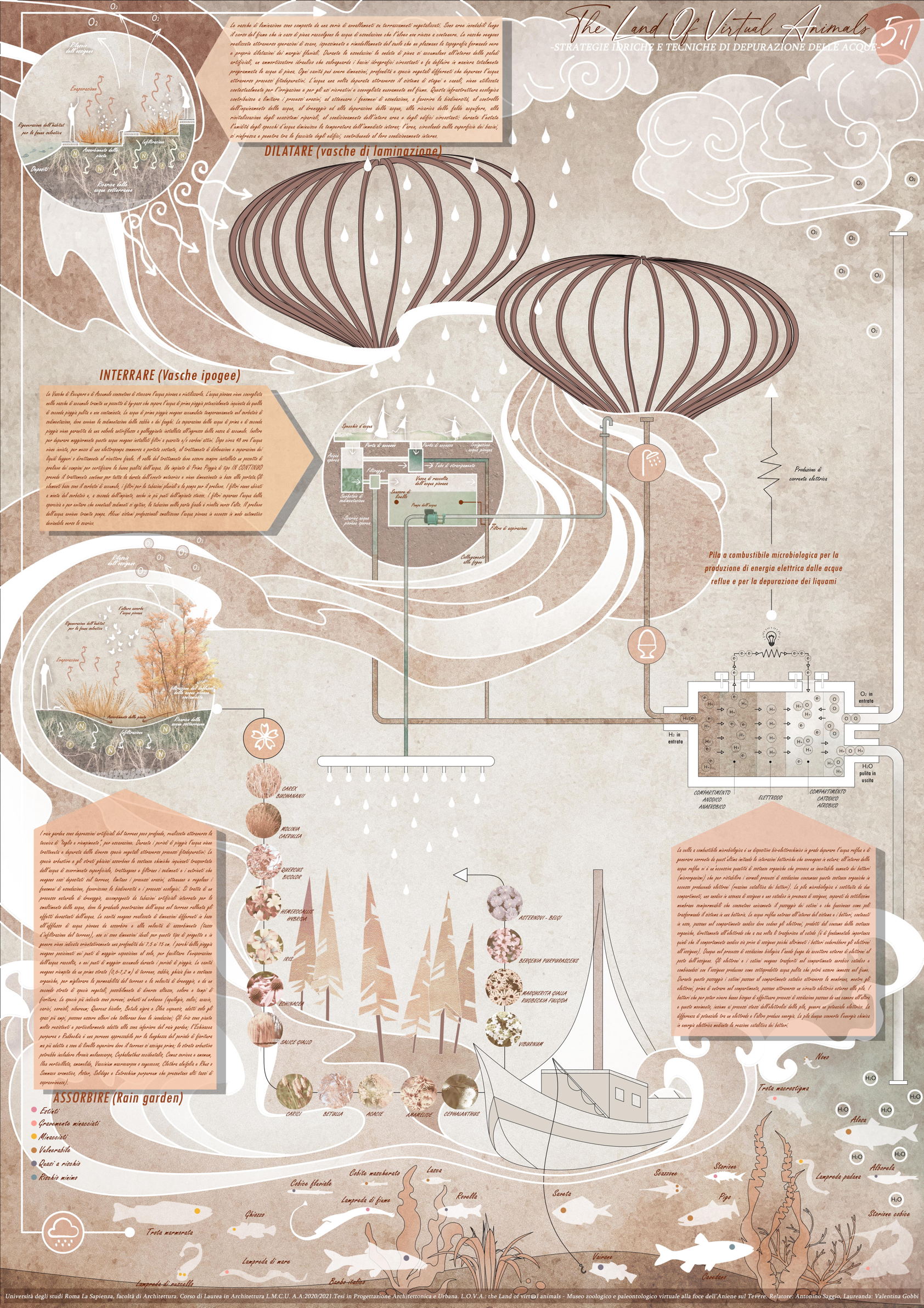 Il progetto è situato alla foce dell’Aniene sul Tevere ed ha come duplice scopo la riqualificazione architettonica ed urbana del primo tratto del fiume Aniene attraverso la realizzazione di un’infrastruttura slow ecosostenibile lungo la quale si collocano una serie di micro-installazioni. Ogni micro-installazione ospiterà diversi giochi ed attività alle quali l’utente potrà accedere con pagamenti in eco-monete ottenute attraverso baratto con attività sociali proattive e produttive. Gli ecoin vengono poi utilizzati come seconda modalità di accesso allo zoo ologrammatico e come ricompensa del superamento di alcune missioni da affrontare per potere accedere ai singoli edifici nell’area di progettazione.