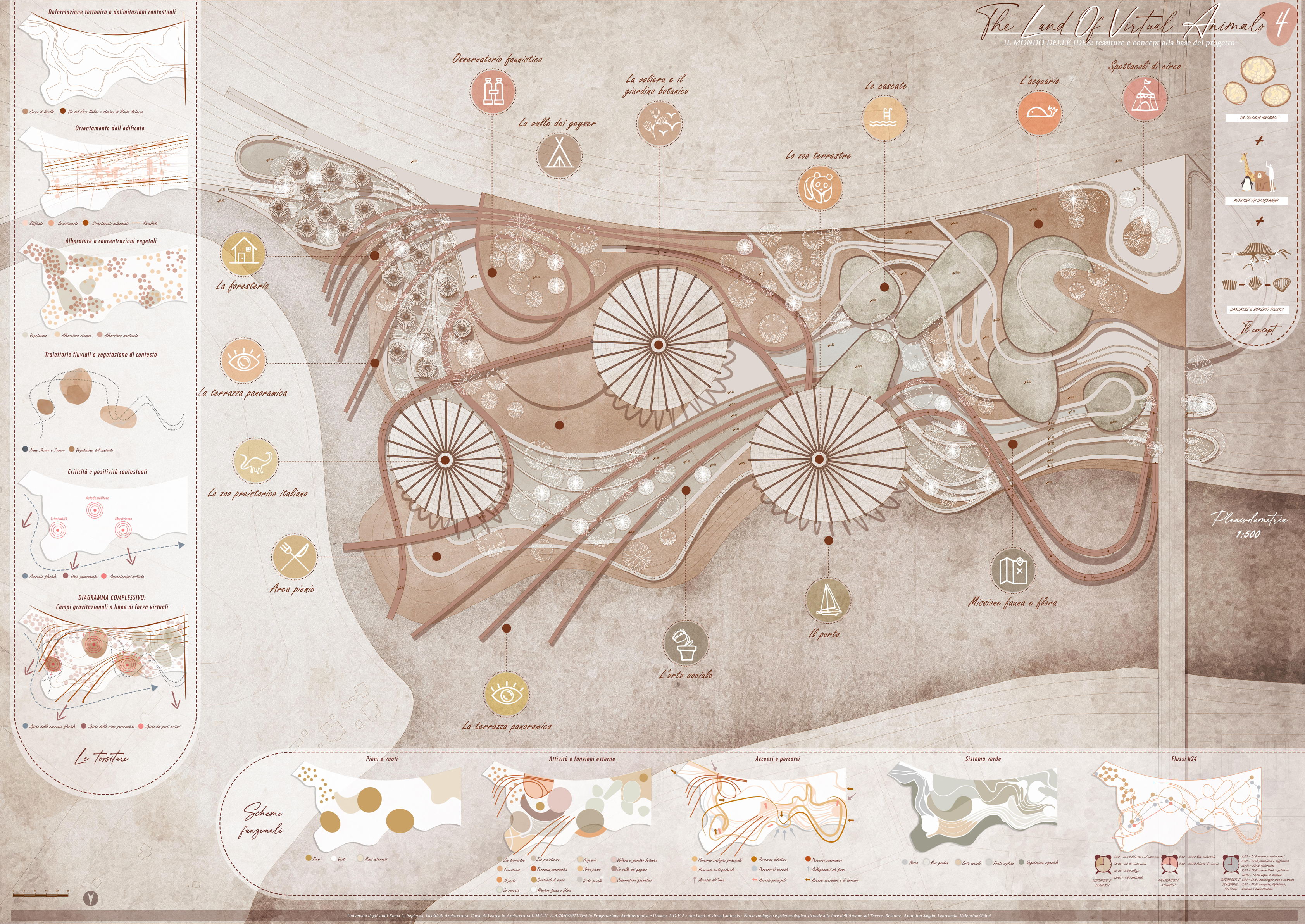 Il masterplan del pèrogetto si basa sullo studio dei diversi sistemi che compongono l’area di progettazione. Tali sistemi, indipendenti l’uno dall’altro, ma comunicanti tra loro, vengono poi sovrapposti l’uno all’altro come se fossero dei layer, delle stratificazioni che danno origine alla complessità del progetto. Una volta sovrapposti, i tratti appartenenti ai vari livelli, vengono modificati e come "spinti" da campi gravitazionali astratti.