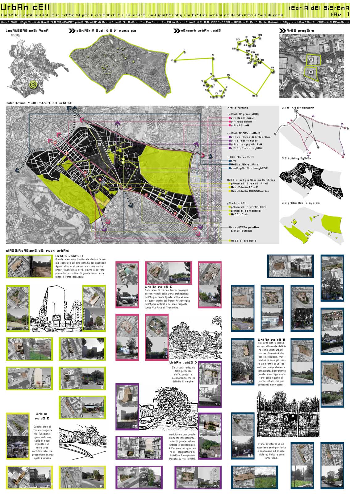Il progetto propone un sistema urbano, architettonico e spaziale, da insinuare nelle smagliature della città, capace di creare una cerniera tra il costruito e i vuoti urbani, presenti in gran numero in questo brano di città. Il sistema sarà in grado di supportare “micro-elementi” di vita flessibile e mutevole per rispondere a una domanda sia nel breve che nel lungo periodo, un sistema per rispondere a tutte le esigenze dettate dalle nuove forme dell’ ”ABITARE” lo spazio pubblico e privato.