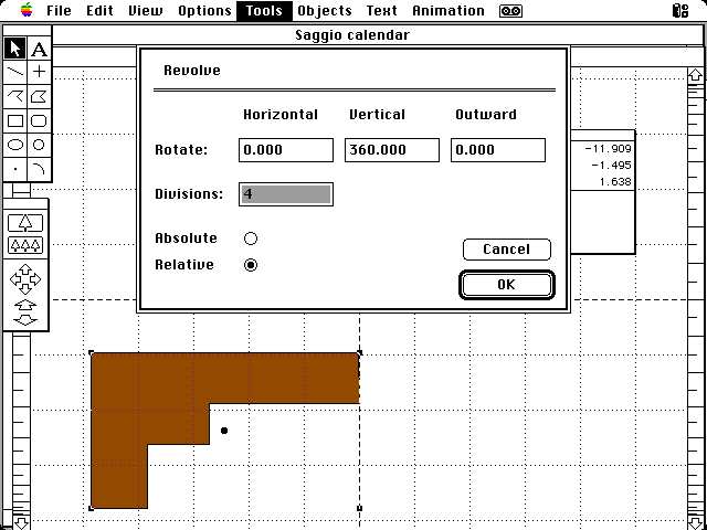L’ambiente di lavoro di cui discuteremo (Aldus Super3D versione 2.00) è frutto di un gruppo con a capo Michael Martin e opera in qualunque elaboratore della famiglia Macintosh prodotti dalla Apple computer. Dal punto di operativo, gli aspetti fondamentali di questo ambiente di modellazione per superfici sono i quattro seguenti: