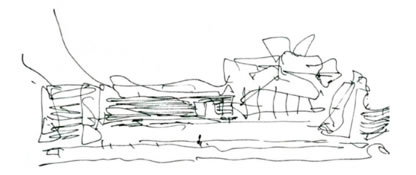 There are two key works: one is in Bilbao - apparently a plastic exercise along futurist lines, in reality a new urban intersection which creates new civic spaces - the second is in Tourcoing - an apparent conservation of pre-existing structures that actually invents a new interstitial space between a new roof and the pre-existing roofs in a mediating, multi-media, fluidly digital vision of Pirenesi-like winding ravines.