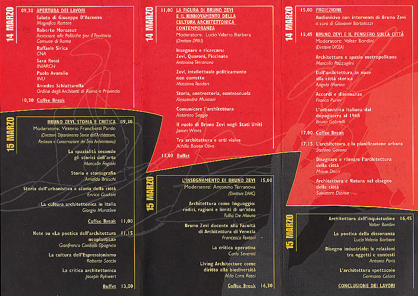 Giovedi 14 Marzo e Venerdi 15 Marzo. Convegno Internazionale di Studi "Bruno Zevi per l'architettura". Aula Magna dell'Ateneo, Città Universitaria, Roma. International Conference on Bruno Zevi