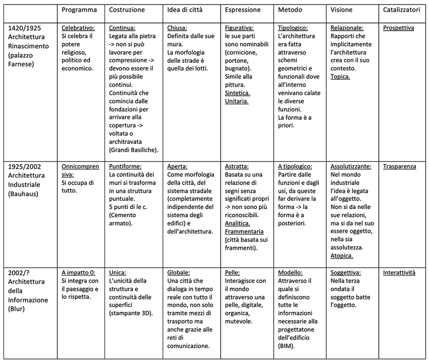 ARCHITETTURA DELL'UMANESIMO / ARCHITETTURA DELL'INDUSTRIAlESIMO / ARCHITETTURA DELL'INFORMAZIONE